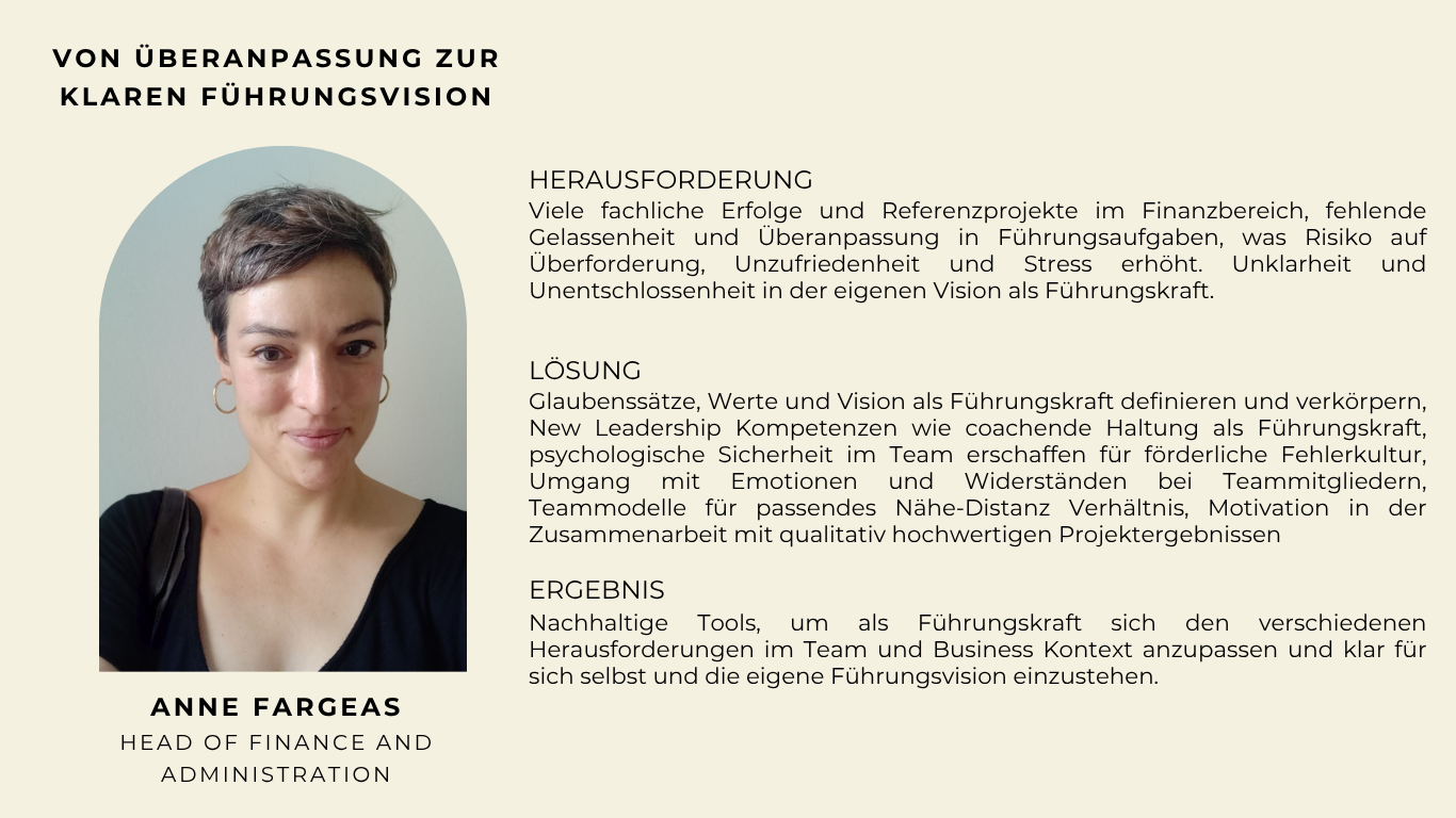 Das „Lead to Change“ Führungskräfte Coaching Programm ist eine transformative Reise, die Dich als Führungskraft oder Unternehmer:in dabei unterstützt, Deine berufliche Mission ohne Stress, Kontrolle Deines Teams und Selbstaufopferung in die Umsetzung zu bringen und Deinen Beitrag in Deiner Branche sichtbar zu machen.